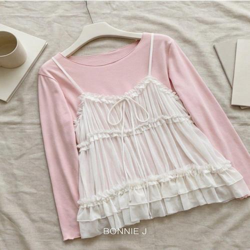 [보니제이]여성 발레코어 캉캉 프릴 뷔스티에 티셔츠 세트 레이