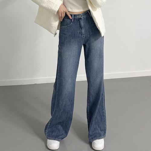 [다잇템]여자 빅사이즈 기모데님 넓은 검정데님 청바지 (28831582A)