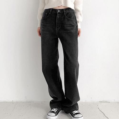 [다잇템]여자 검정데님 와이드핏 논스판 데님팬츠_3 (30094467A)