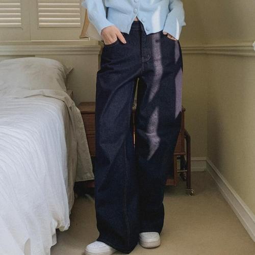 [다잇템]여자 데일리 진청 검정 와이드핏 통 팬츠 (10240212A)