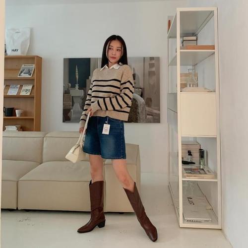 ONM 여자 청바지 윈터 데일리 코디 따뜻 룩 검정 목 폴라