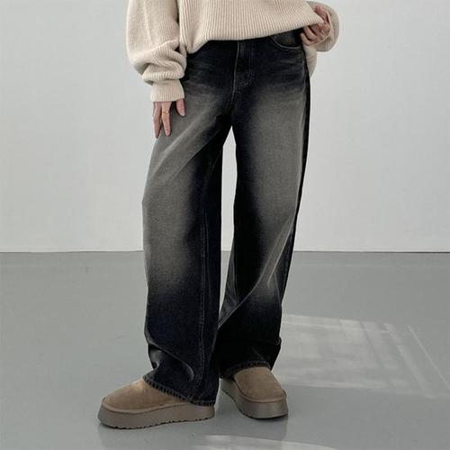 [다잇템]여자 검정데님 린넨청바지 남자 통 워싱 청바지_3 (27375092A)