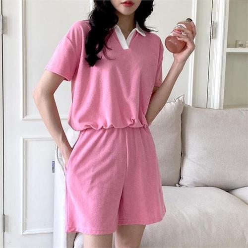 [다잇템]여성 카라 하프팬츠 반소매티 트랙수트 세트 (10118683A)