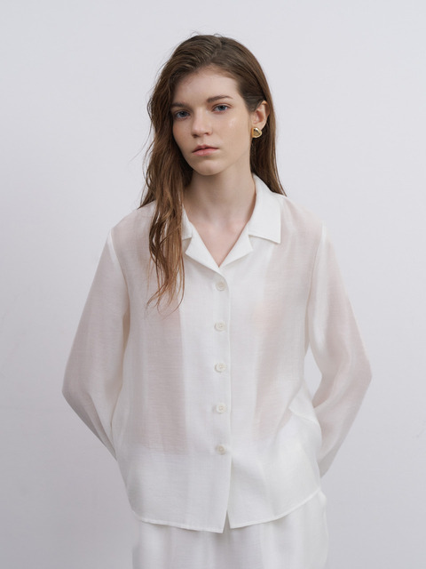 [셀럽하우스]롤업 CLPW5165 반팔 개방감 블라우스 흰색 셔츠 하와이안셔츠