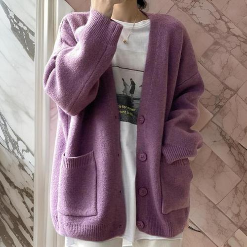 [다잇템]여자 하찌니트 힙커버 V넥 주머니 박시 가디건 (29198865A)