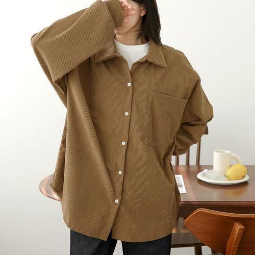 [다잇템]여자 큰주머니 언발 힙커버 오버핏남방 셔츠 (23689993A)
