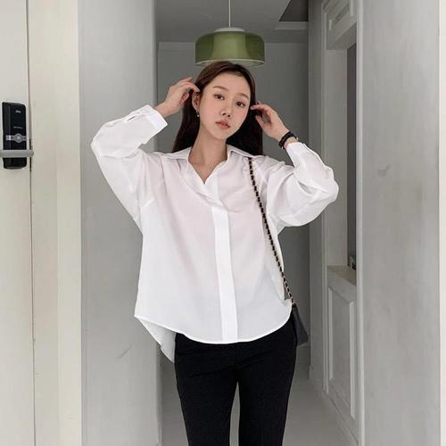 [다잇템]여성 V넥 미니멀리즘 데일리 힙커버 블라우스 (27311403A)