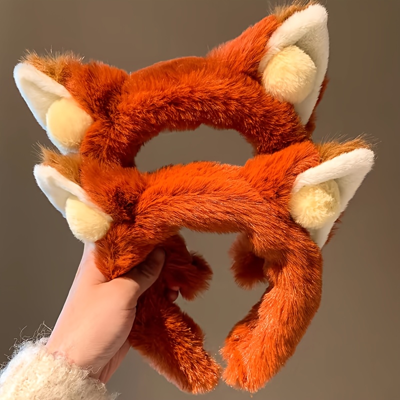 TEMU 레이스와 토끼 귀가 달린 핑크 플러시 헤어밴드, 메이크업 및 세안에 완벽하며 얼굴을 더 작게 보이게 함