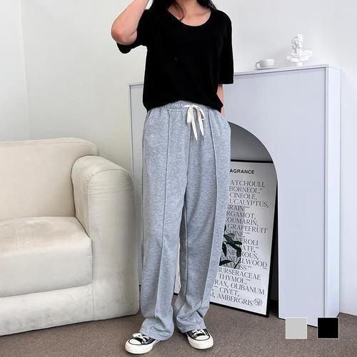 [다잇템]여자 면원단 넓은 드로우코드 핀턱 콤비 팬츠 (10450030A)
