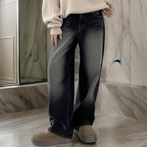 [다잇템]여자 Y2K 그레이진 워싱 통 통바지 청바지 (29950411A)