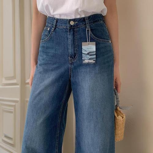 [다잇템]여자 데님팬츠 와이드핏 워싱 통 데님팬츠 (29950423A)