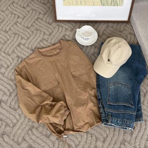 [다잇템]여자 바람막이 캐주얼룩 바스락 맨투맨 (11095371A)