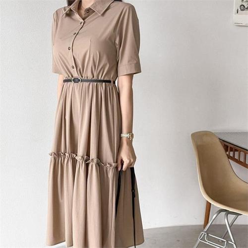 [다잇템]여자 에이라인 반팔셔츠 슬림 혁대 롱원피스 (10118156A)