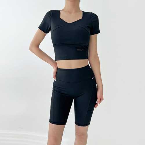 옷자락 / 여성 스포티 스판 크롭 반팔티 5부 레깅스 세트