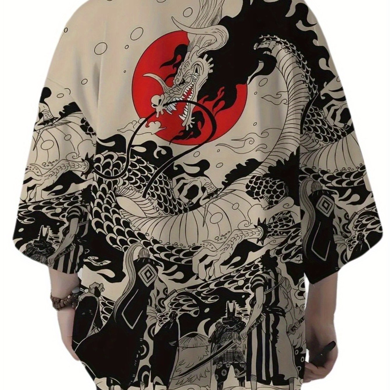 TEMU 카키색 드래곤 기모노 가디건, 중국 사이즈, 사이즈 가이드를 신중하게 확인해 주세요