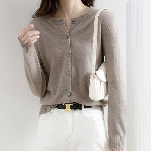 유럽 제품 스트라이프 캐시미어 카디건 여성 봄, 가을 새로운 라운드 넥 부드러운 왁스 수석 감각 울 니트 스웨터 코트