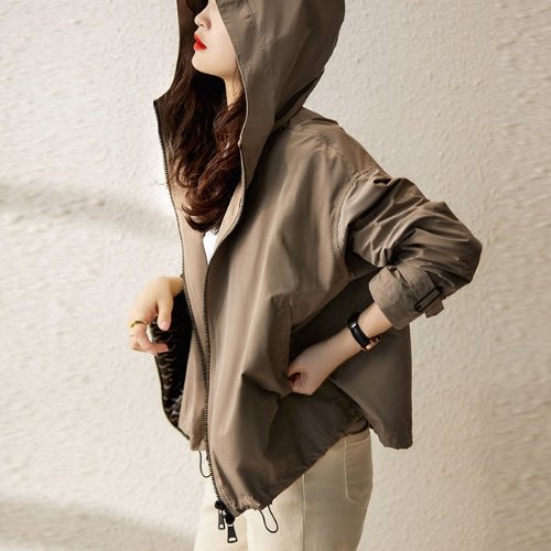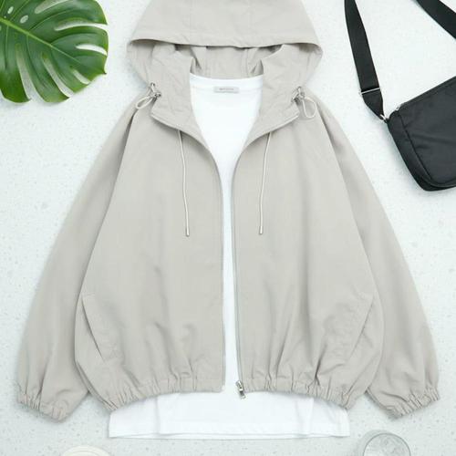 여성 후드 점퍼 경량 루즈핏 크롭 여성 바람막이 점퍼 봄바람 가을 윈드브레이커 간절기 캐주얼 라운드