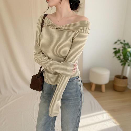 [신상오픈런]여성 오프숄더 긴팔 니트 티셔츠 4종 간절기용 (46120461)
