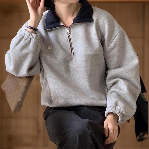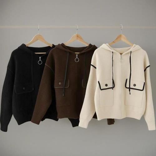 [신상오픈런]여성 오링 후드 집업 니트 배색 포켓 긴팔 골지 스웨터