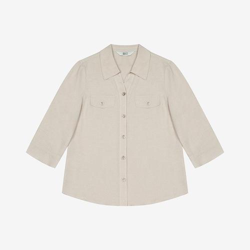 린다샵 르니올 오픈 카라넥 허리 스트랩 원포켓 긴소매 블라우스 cpbl5702k48