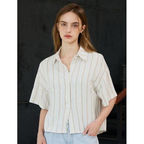 [나인식스뉴욕]오픈카라 크롭 린넨 반팔 셔츠 (NQ2BA005L0)