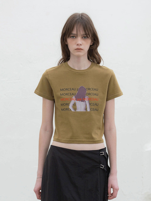 [모슈파모슈] 모슈걸 크롭 반팔 티셔츠_올리브 그린