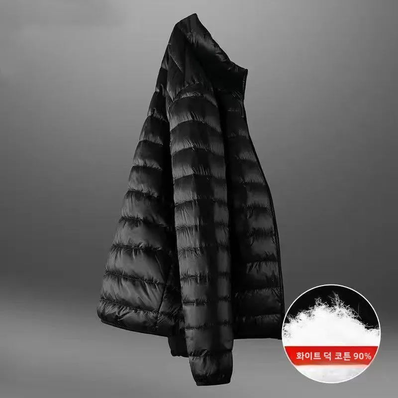 다운 재킷 남자 2024 새로운 90% 화이트 오리 슈퍼 라이트 다운 재킷 남자 경량 열 코트 후드 깃털 코트