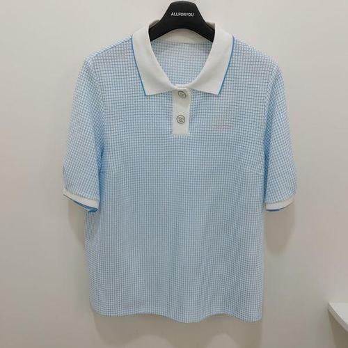 [올포유]여름 여성 장식단추 니트 티셔츠(블루,브라운) ALTPO4271