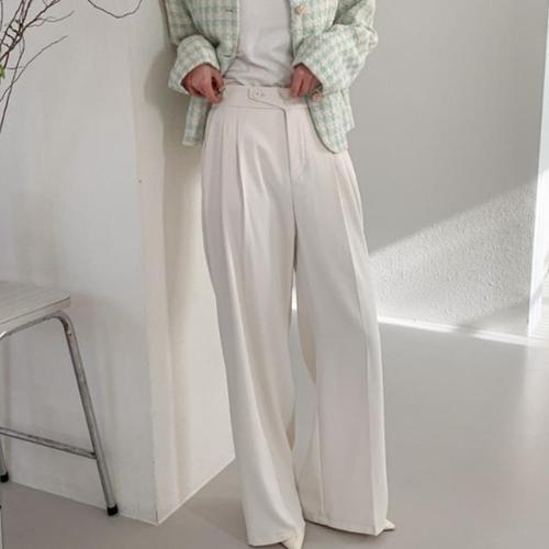핀턱 단추 밴딩 와일드 모직 와이드팬츠 나팔바지 여자 출근 하객
