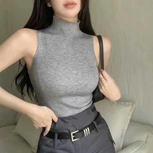 [다잇템]여자 폴라넥 내의 슬리브리스 골지 모크넥 니트_3 (30094044A)