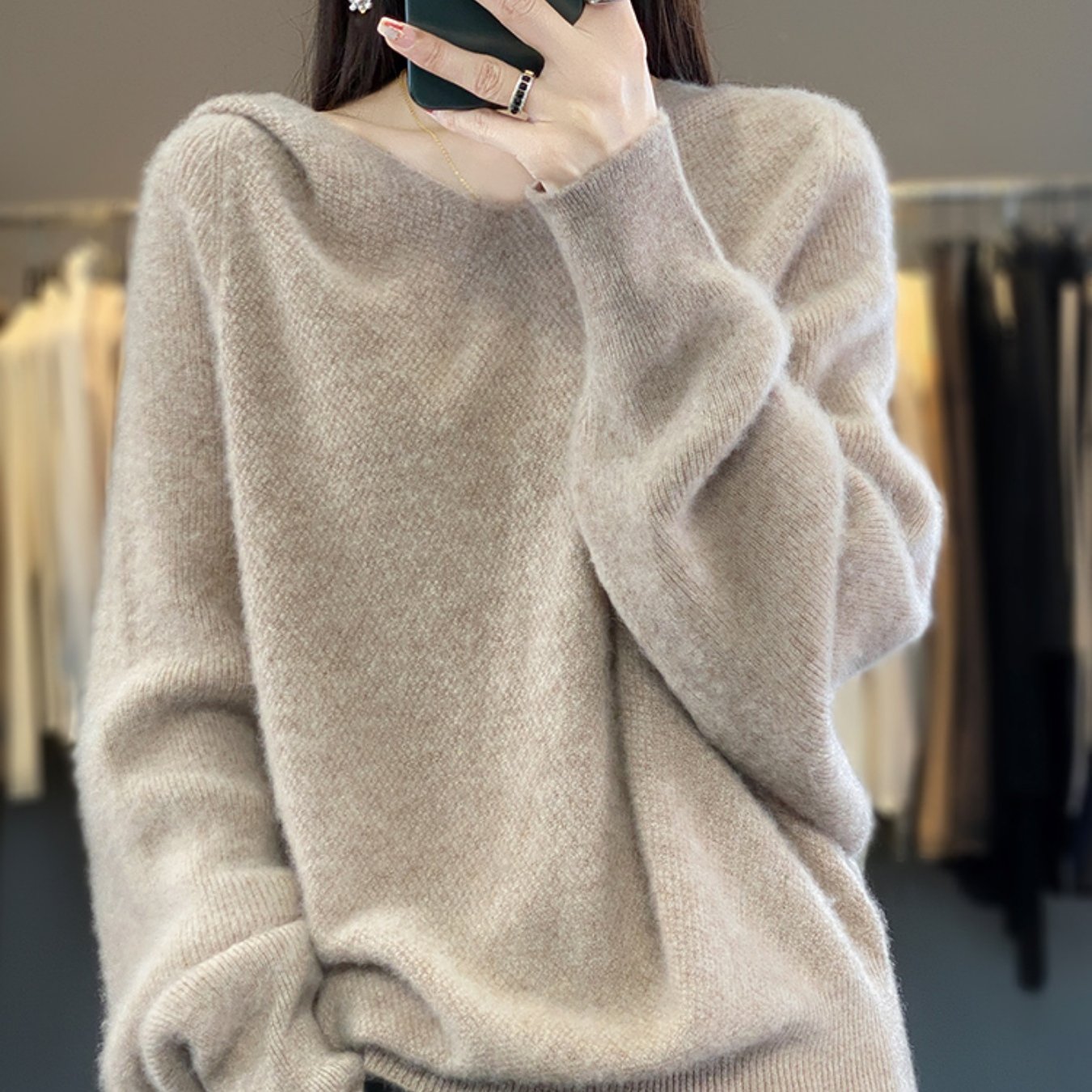 울 플럼드 루즈핏 브이넥 니트 (9color)