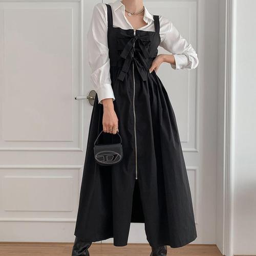 [다잇템]여자 나일론 집업 리본 스트랩 롱원피스 (10845838A)