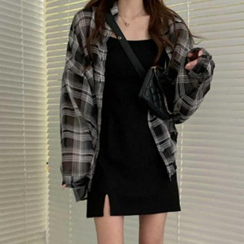 [주식회사 브이와이][JHQRJR2Z_4B]앞트임 나시원피스 끈나시 체크셔츠 편한코디 (24026039A)