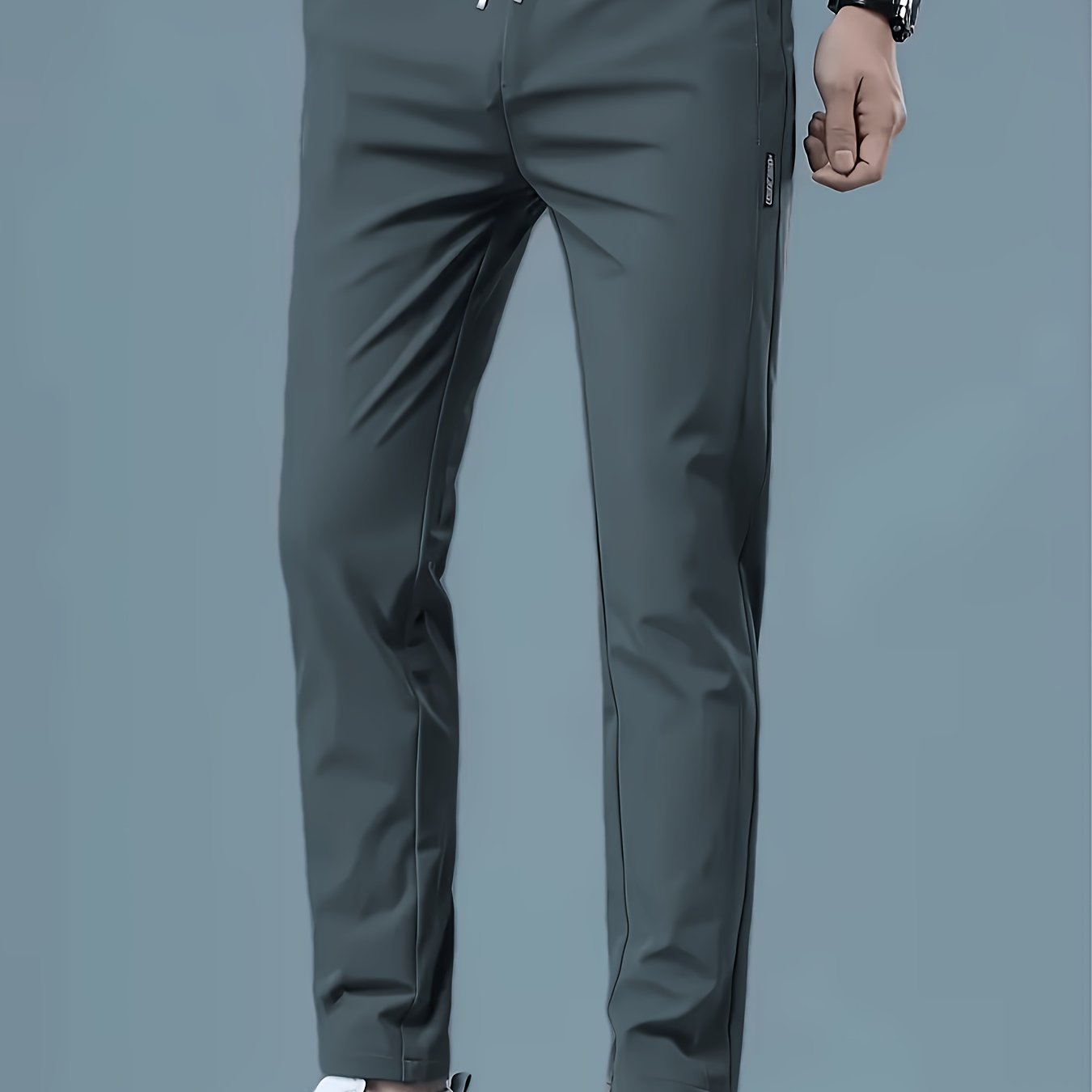 TEMU 남성용 솔리드 컬러 신축성 드로스트링 & 밴드 캐주얼 팬츠 - 사이드 포켓 포함, 헬스장, 사무실, 야외 활동용 - 솔리드 컬러 스트레치 트라우저 (세탁기 사용 가능) - 일상 착용에 적합한 편안한 핏, 남성 패션에 어울림