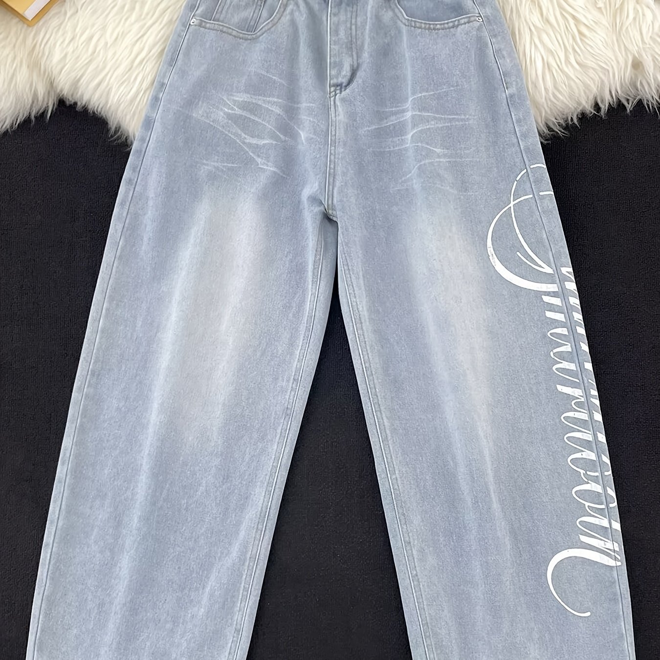 TEMU 남성용 가을/겨울 신상 아메리칸 레트로 워싱 페이크 데님 트렌디 루즈 레그 와이드 레그 캐주얼 바지