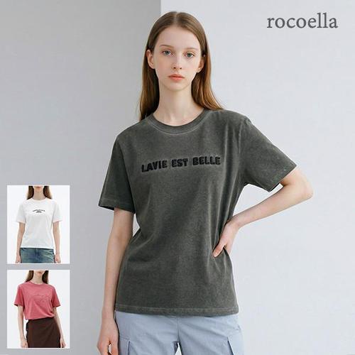 [로코엘라] 네오 코튼 100 피그먼트 레터링 자수 여성 티셔츠
