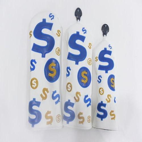 [기타]USA Dollar 달러 드라이버 우드 유틸리티 헤드커버 3종 세트 블루 화이트