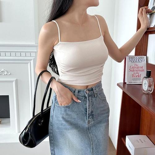 [오노마] ONM 패드내장 여성 크롭 끈나시 이너 민소매 무지 베이직
