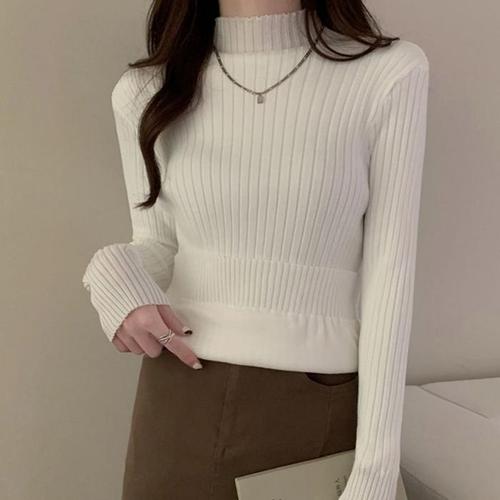 슬림핏 골지 반폴라 니트 티셔츠 데일리 이너탑