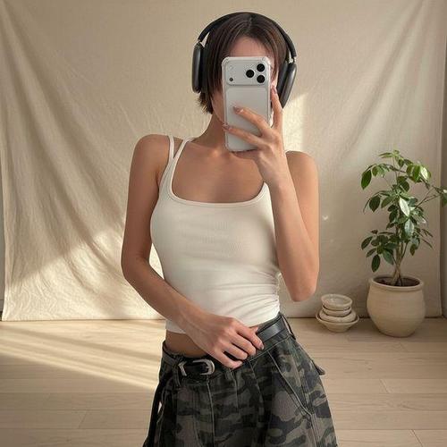 슬림핏 골지 끈나시 캡내장 이너 크롭 나시티