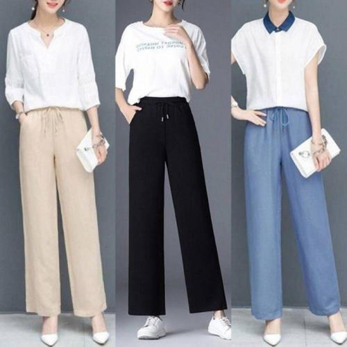 [오너클랜]인기상품 여성용 시원한 허리밴딩 인견 통 와이드팬츠 여름용 기본 바지 [WFLLK86_260305]