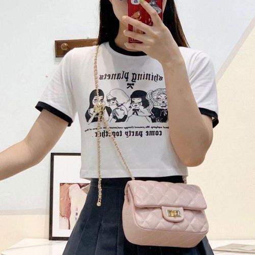 [오너클랜]인기상품 일러스트 배색 포인트 반팔 크롭 티셔츠 여름용 [WFLLKIU_260305]