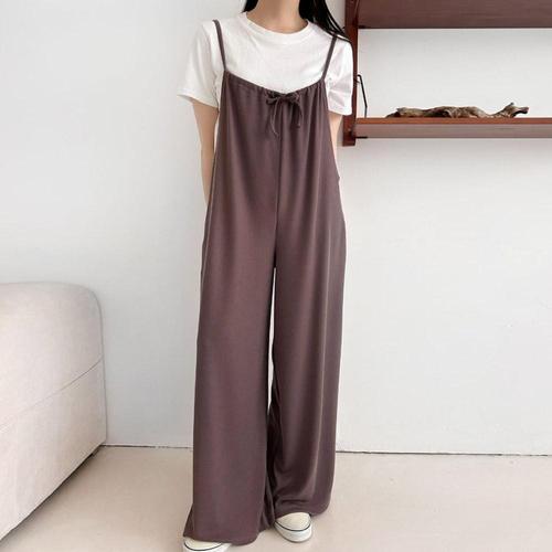 [유야]쿨 무지 스판 끈 나시 포켓 와이드 점프수트 레이어드 점프슈트 -JS0022H- 빅사이즈 루즈핏 여성 ..