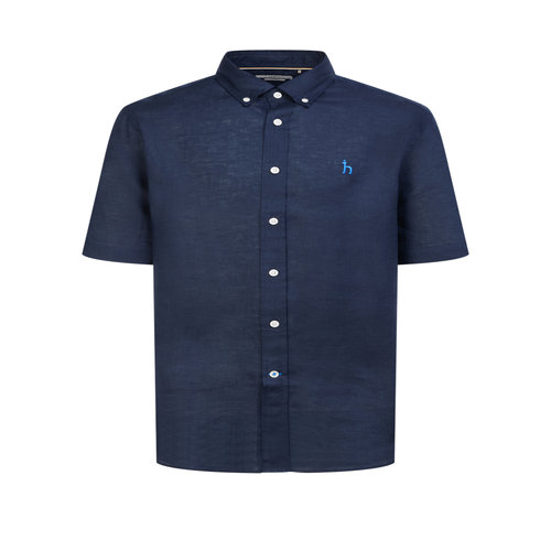 헤지스 남성 네이비 버튼다운 린넨 반팔캐주얼셔츠 (WHSH5B501N2)