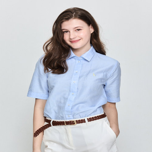 헤지스 여성 [스테디셀러][린넨]라이트블루 반소매 셔츠 (WSSH5BC45B1)