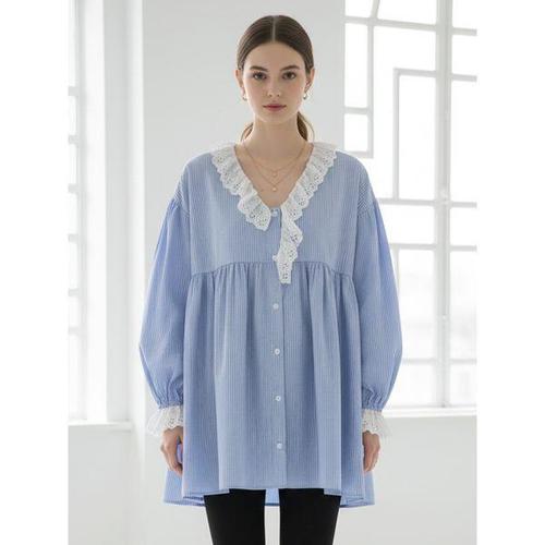 [리블리크]포지 스트라이프 레이스 셔츠_RF1BL045