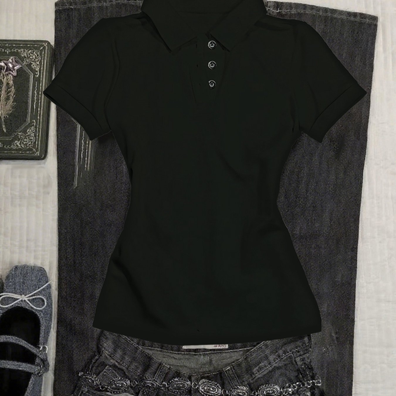 TEMU 여성용 Y2K 스타일 슬림핏 반팔 셔츠 V넥 & 레터링 프린트 - 캐주얼, 오피스, 세미포멀 착용 가능 - 세탁기 사용 가능 - 탑