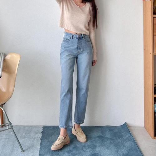 [다잇템]여자 배기청바지 워싱진 중청 코튼 청바지 (10547221A)