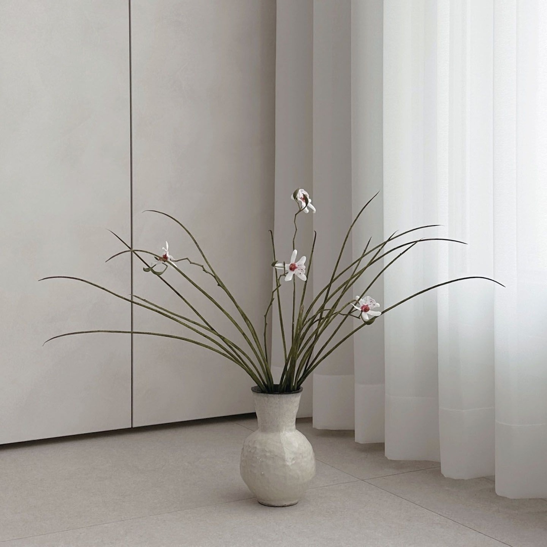 [오늘의집 단독] 소담한 달항아리 난초 조화 + 화병세트 테이블피스 인테리어 오브제