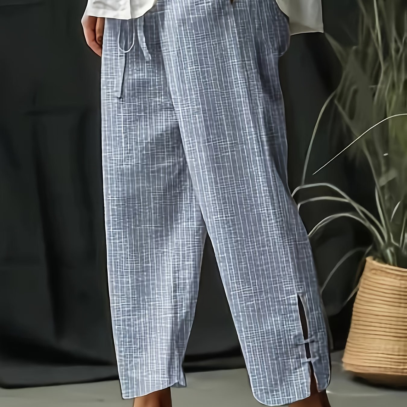 TEMU 새로운 사이드 포켓 탄성 허리 드로스트링 풋 스플릿 여성용 9단 긴 바지